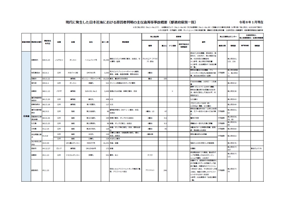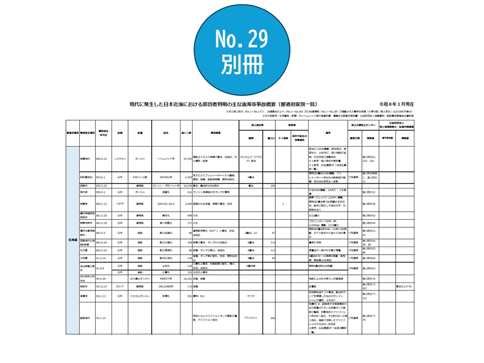 No.29 2026年1月別冊 「現代に発生した日本近海における原因者判明の主な油濁等事故概要(都道府県別一覧)」 編集委員会(佐々木邦昭氏資料提供)